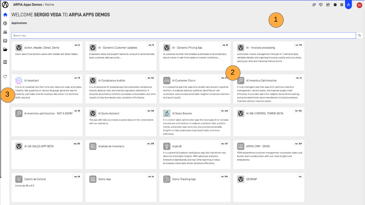 The Main Menu varies based on the user’s profile and provides navigation to key areas, such as:
