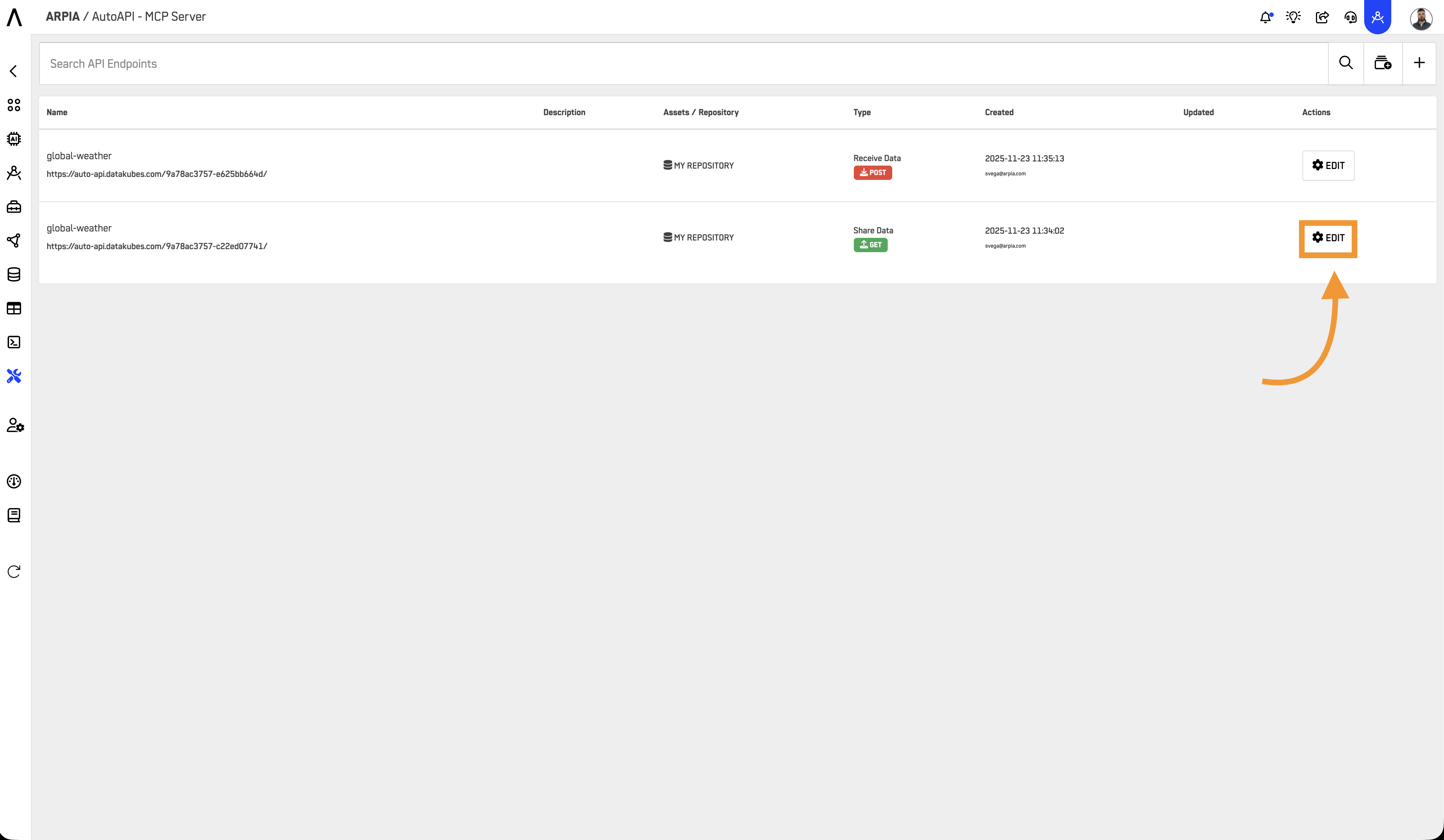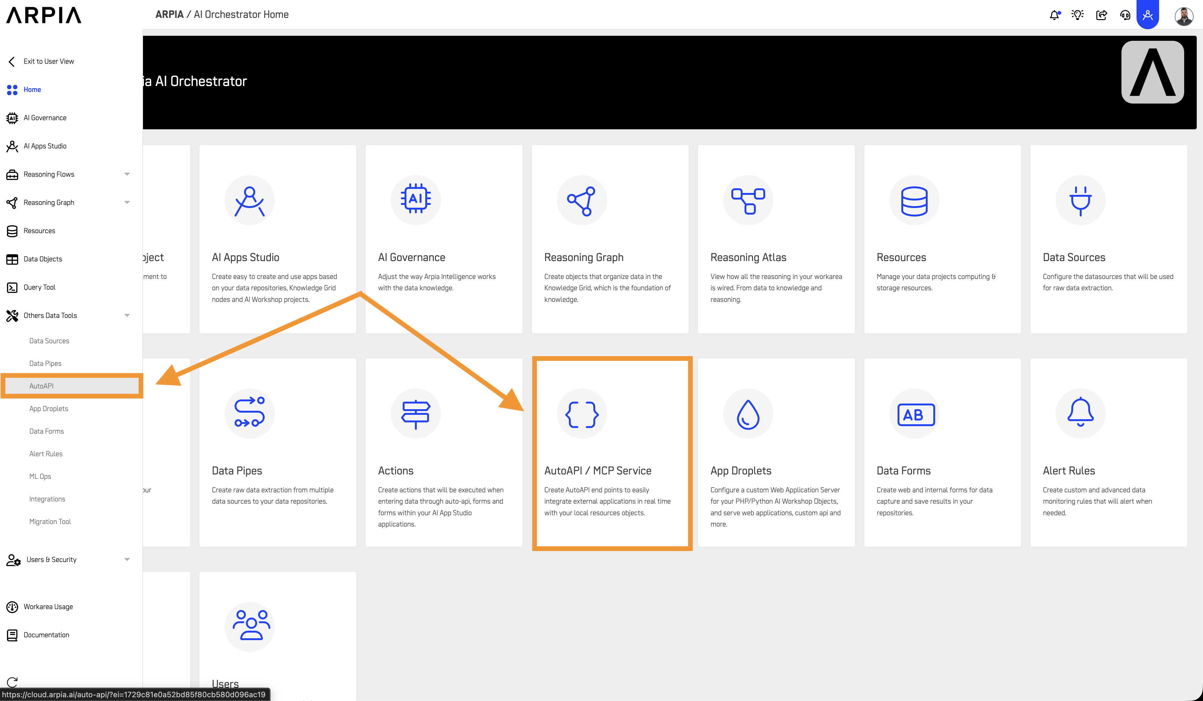 Navigate to the AutoAPI section in your Orchestrator toolbar.