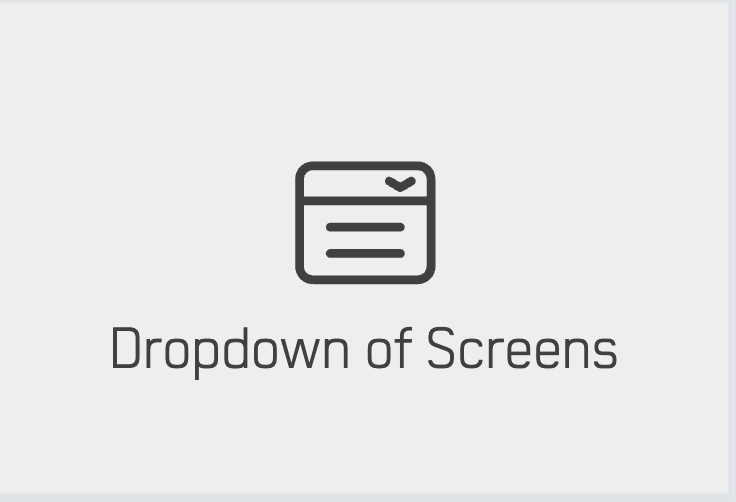 The Dropdown of Screens tool groups hidden screens into a dropdown menu, making navigation smoother. Buttons can be added to link to other screens or external URLs, improving user interaction within the app.