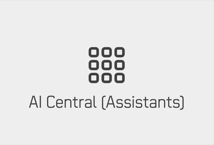 The AI Central screen serves as the hub for managing all AI assistants and reasoning flows within a DataApp, allowing users to launch, monitor, and connect multiple assistants in one place.